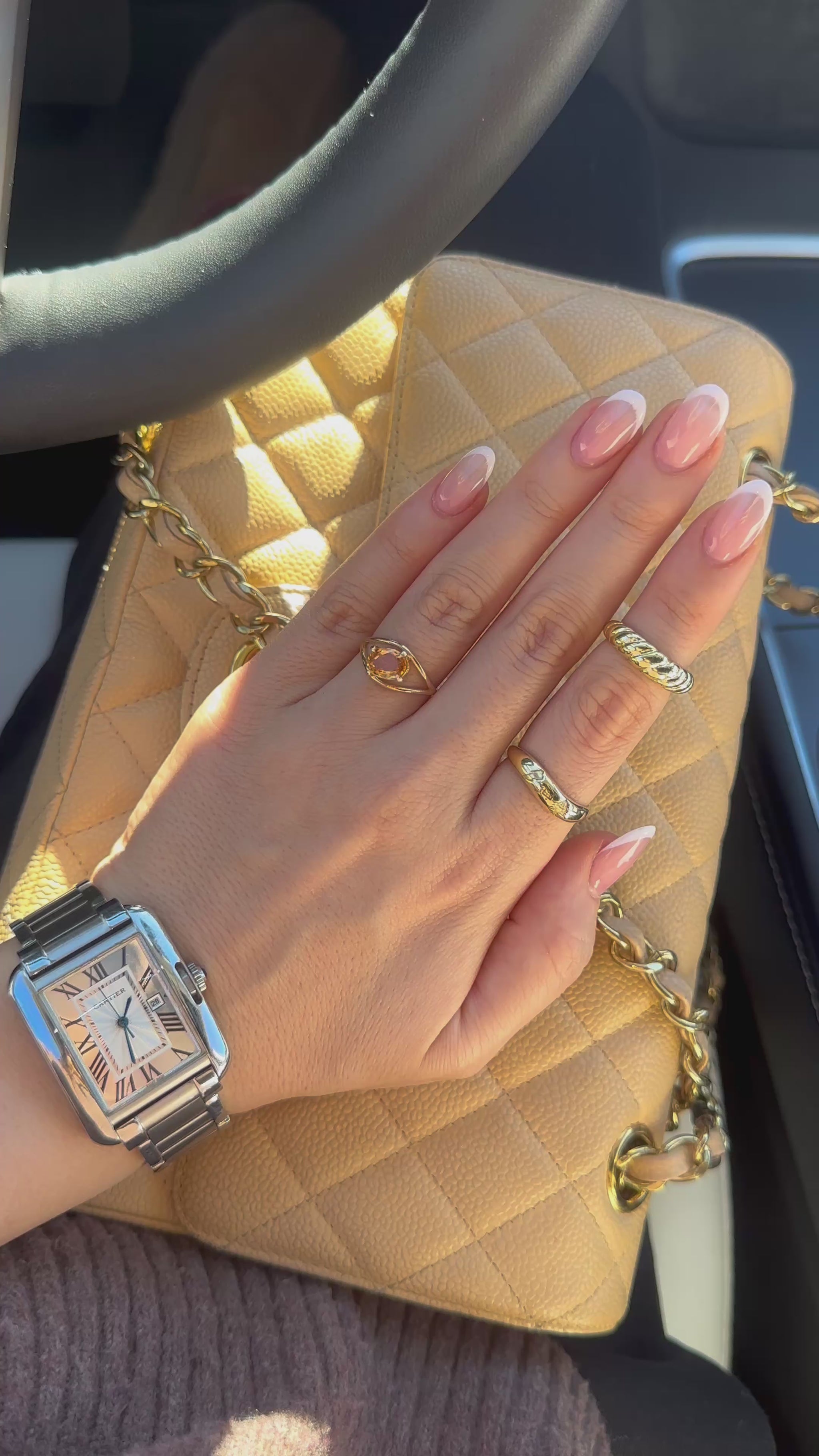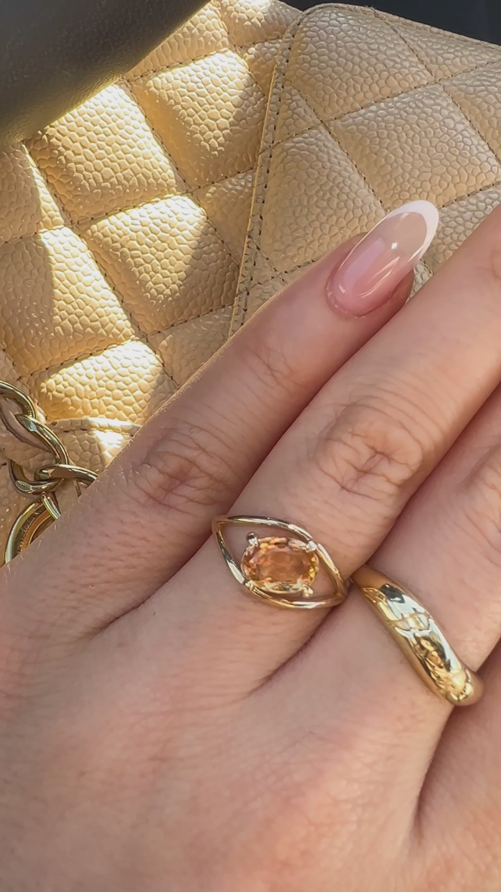 Gorgeous natural 14k yellow gold imperial-topaz oval-cut center. The rich golden-orange hues of the topaz are perfectly complemented by a beautiful & stylish loop setting